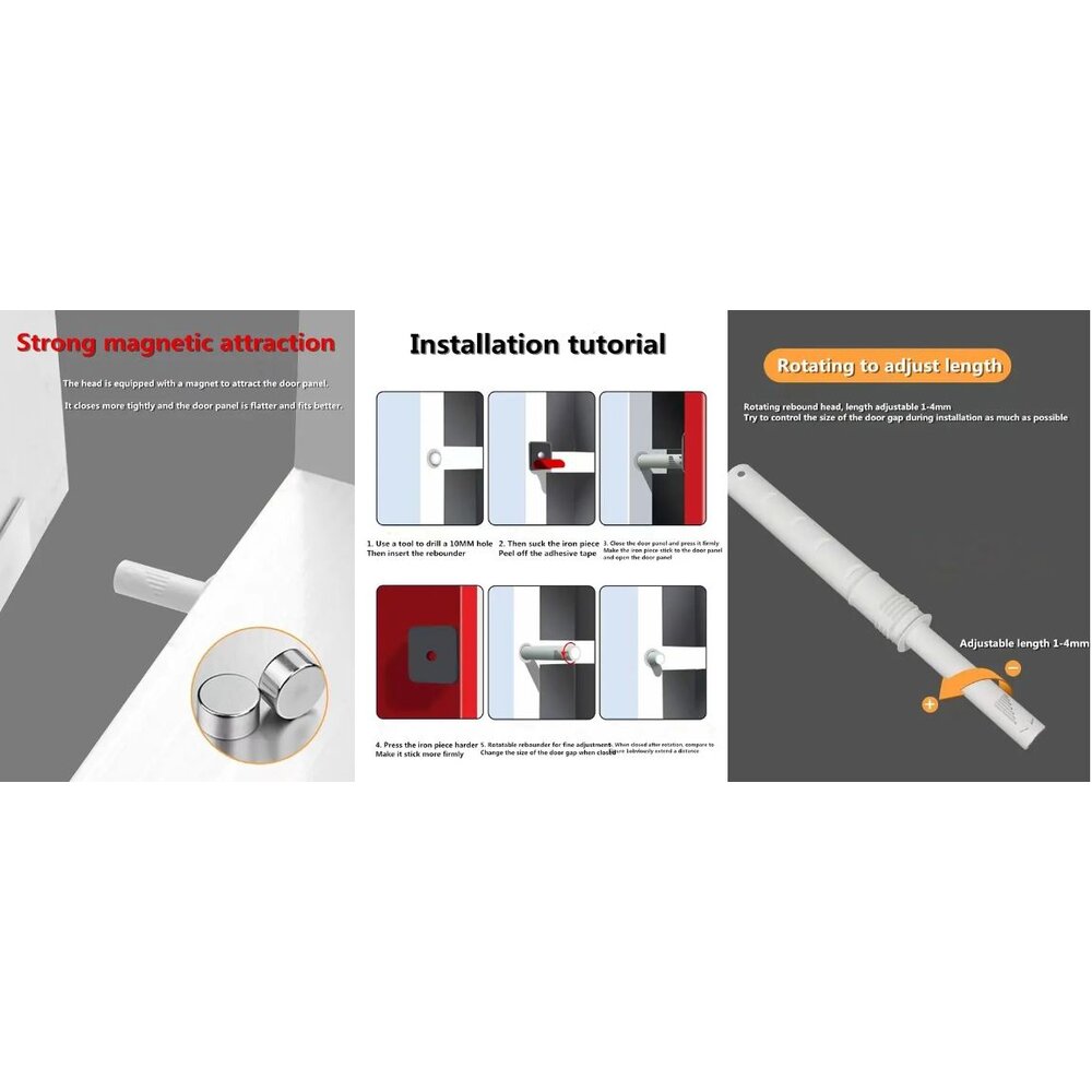 添加適量膠水進行最終固定。在櫃門上安裝定位鐵片,並用螺絲或3M膠固定。鐵片調整子彈的長度,以達到更好的使用效果。