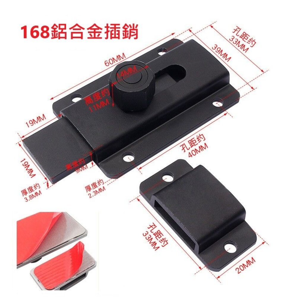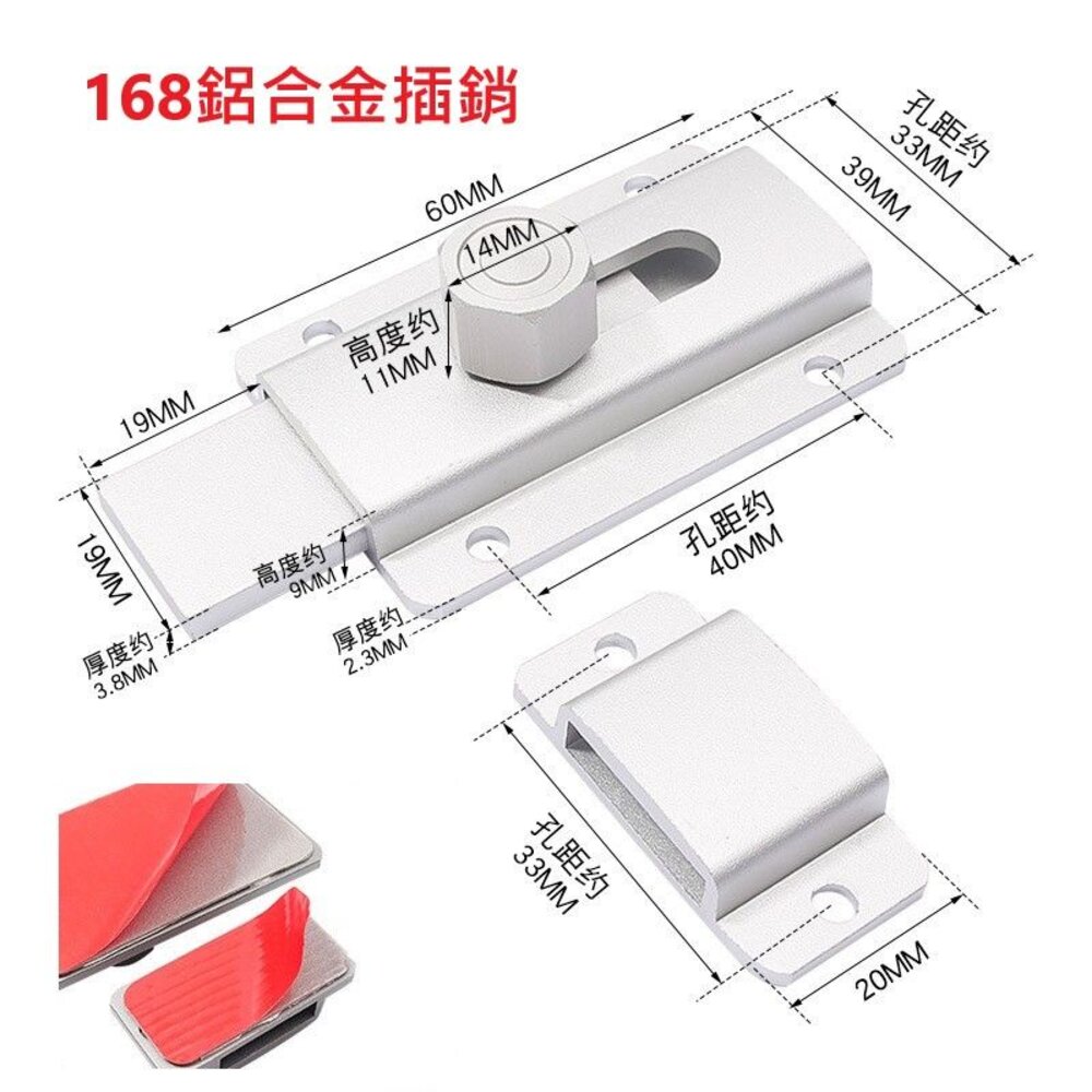 168鋁合金插銷 附3m自黏片 尺寸:60*39mm