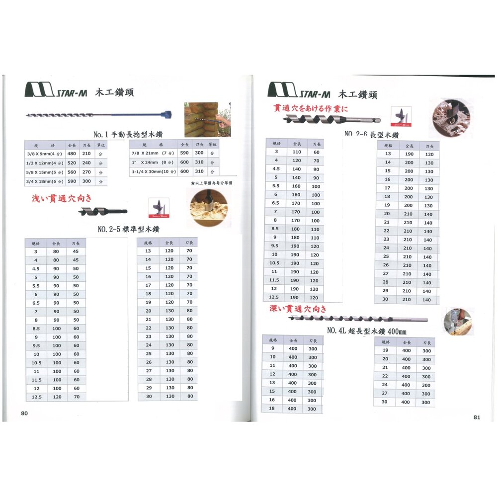 中心尖設計的木工鑽頭