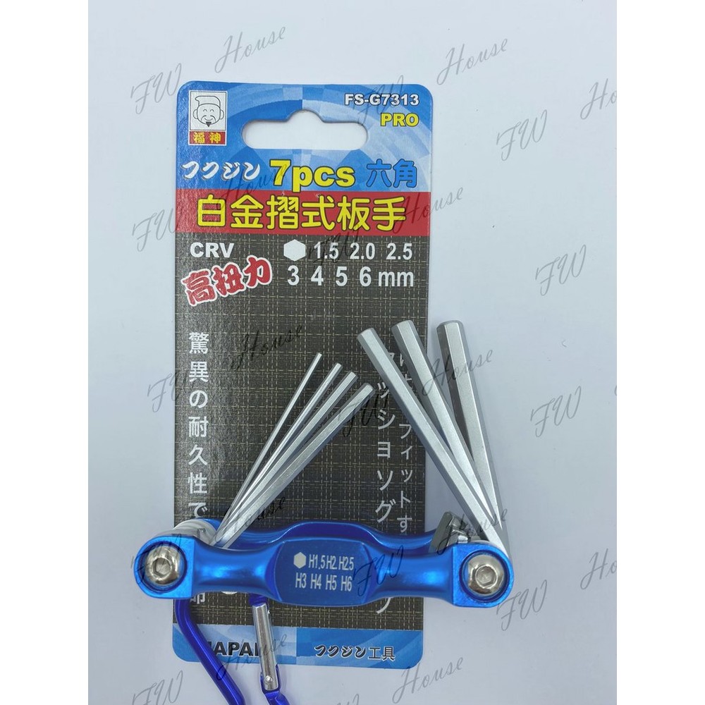 日本福神 1.5-6mm 白金折疊六角板手 摺式六角板手 7支組 鑰匙圈型六角起子 FS-G7313 PRO