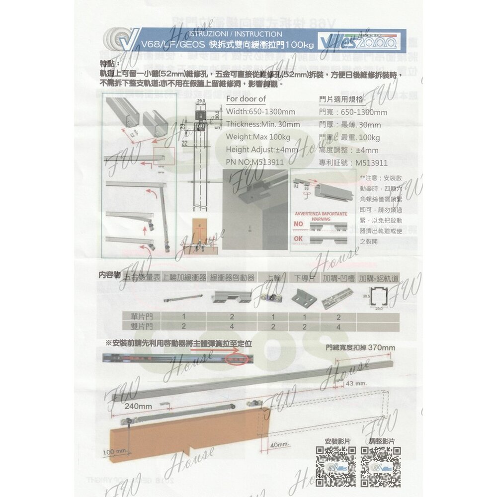 6. 市面上唯一軌道30*30mm 門片最大載重100kg。