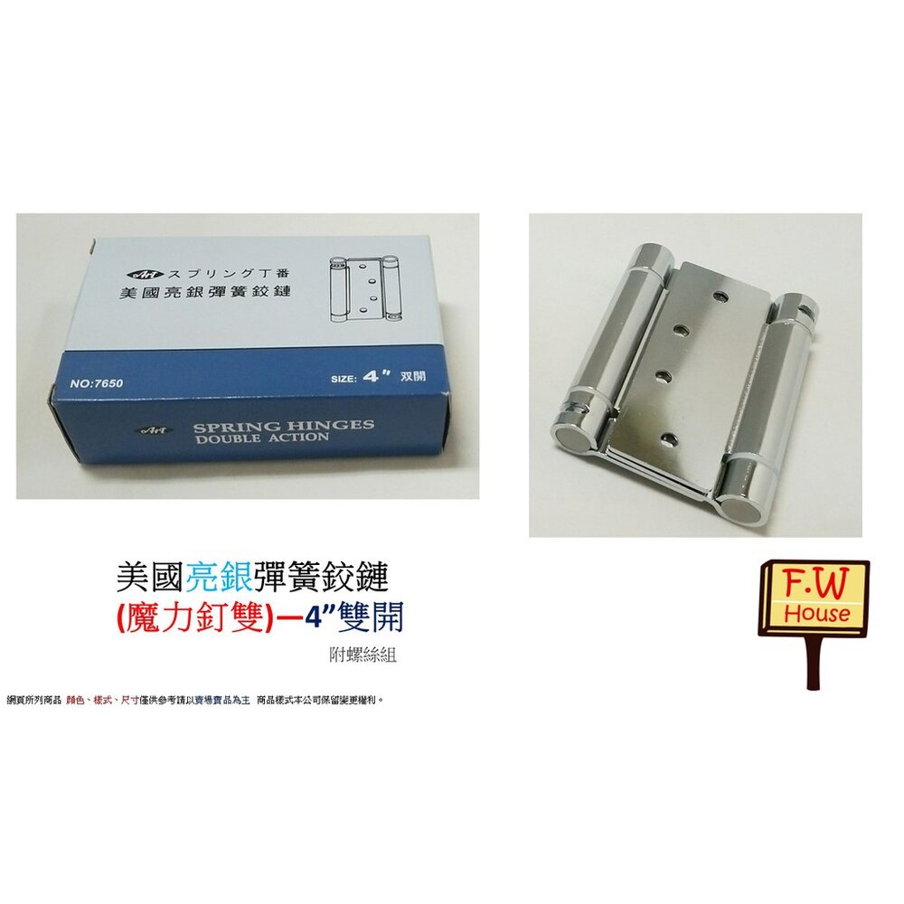 | 亮銀**雙開** 4英吋 美國彈簧鉸鏈 | 現貨 983 件 |