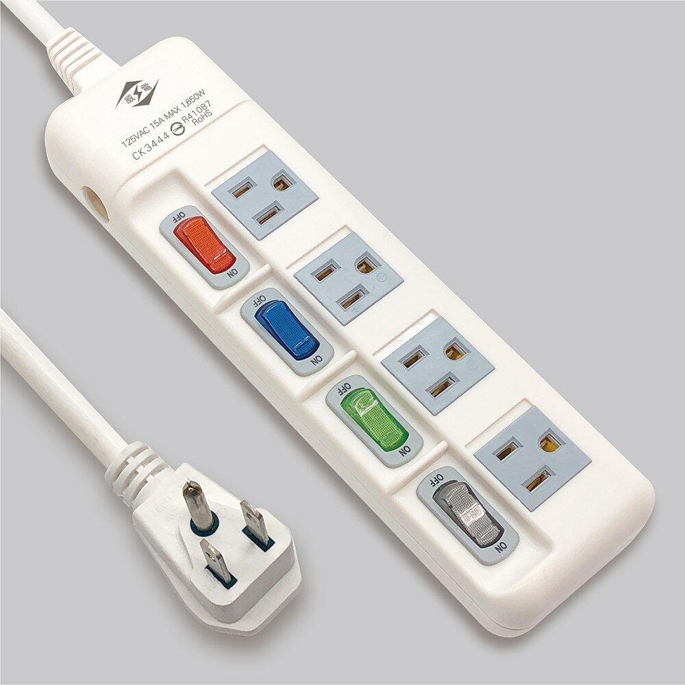 FW 威電 CK3444 過載斷電4開4座 電源線組 6尺 9尺 15尺 全新安規合格認證 延長線 電源線 電腦線 台製